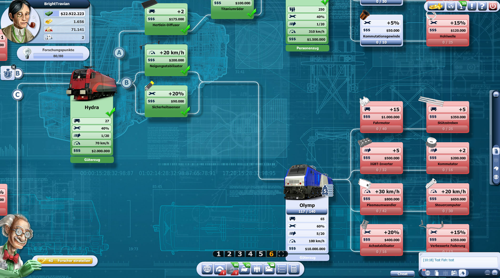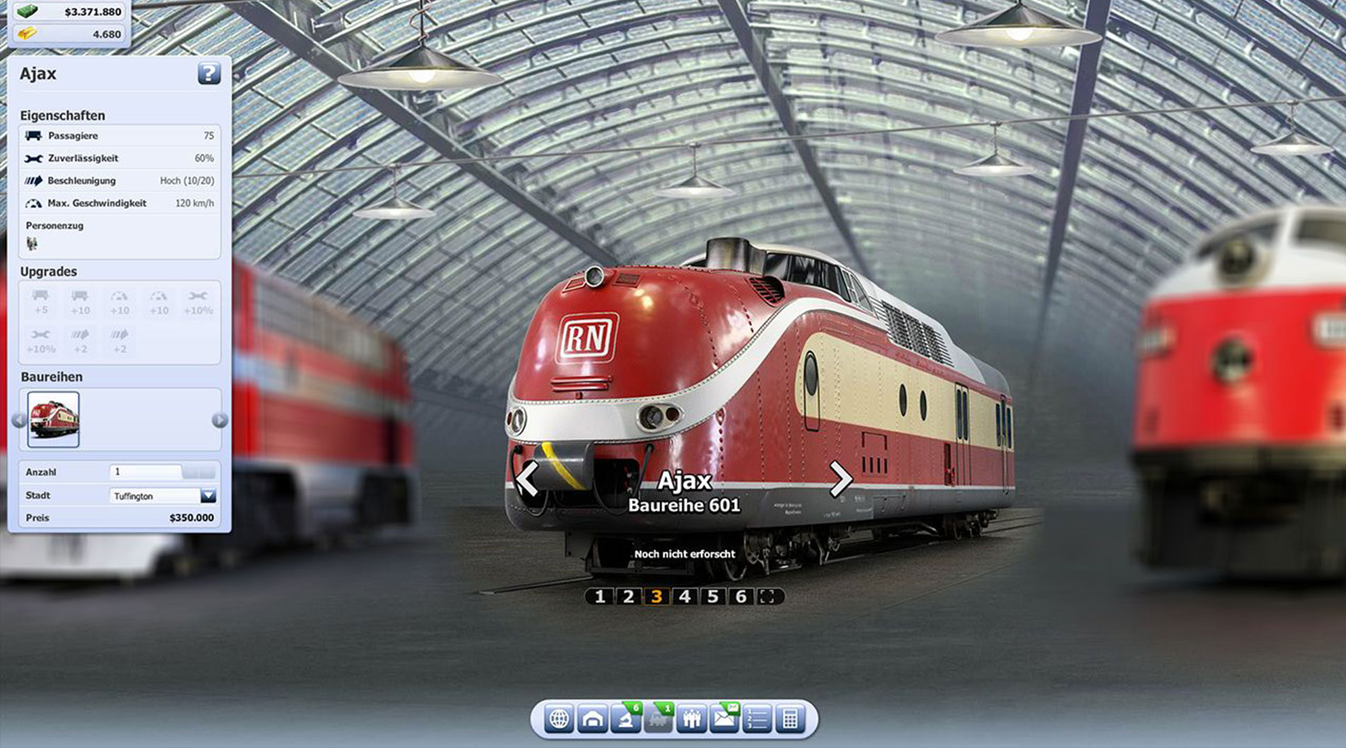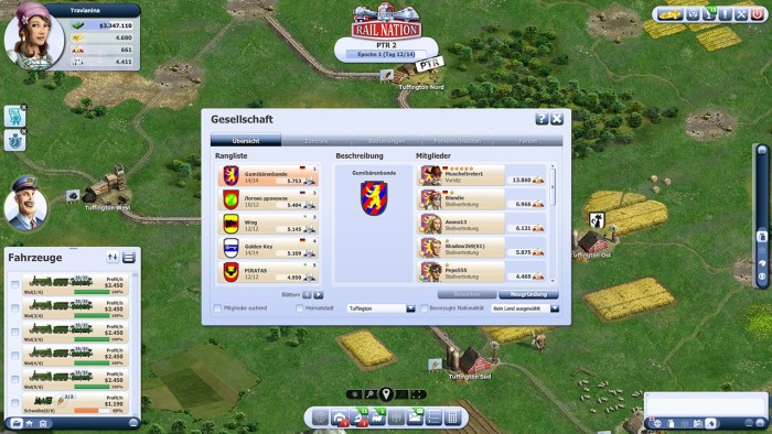 Tauche mit Rail Nation ein in die spannende Welt der Eisenbahn! In dem weltweit beliebten Strategiespiel fährst Du mit über 3 Millionen Spielern um Prestige und die forderen Plätze in der Rangliste! In Gesellschaften wirst Du noch mächtiger und verbündest Dich mit anderen Spielern für noch größere Erfolge! Wettbewerbe, Persönlichkeiten und Boni bei Betrieben verbessern Deine Chancen auf den Sieg über andere! Eine epische Wirtschaftssimulation, wie du sie in einem anderen Eisenbahnspiel noch nie zuvor erlebt hast.